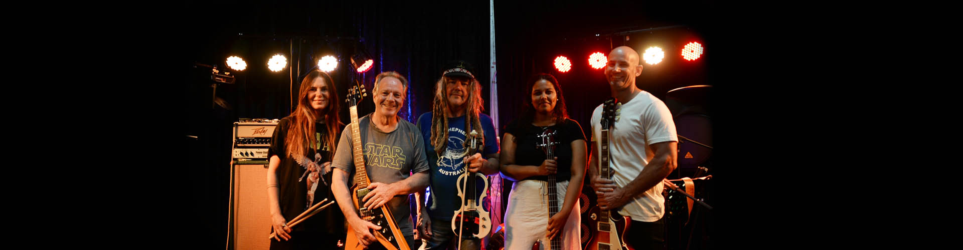 Bringing Michael's heart-felt guitar and vocals, Amy's joyous drums and vocals, Camille's groovy bass playing and vocals, together with Jay's keys, guitar and enthusiastic lead vocals, this is music to uplift and enlighten, not just entertain. Our dear friend Rupert Guenther joins us onstage as our very special guest whenever his busy touring schedule allows. Rupert's virtuoso violin work and traditional vocals add another dimension to our music.